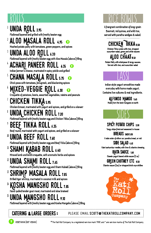 Introducing The Kati Roll Company - New York, a celebration of vibrant Indian street food nestled at 22 Maiden Lane. Renowned for their flavorful kati rolls, each dish is a journey for the palate. The rolls come wrapped in warm flat paratha bread, with options like the Unda Roll, featuring a freshly beaten egg, and the Aloo Masala Roll, showcasing a spiced potato patty paired with tomatoes and green peppers. For a health-conscious twist, opt for the whole wheat roti.